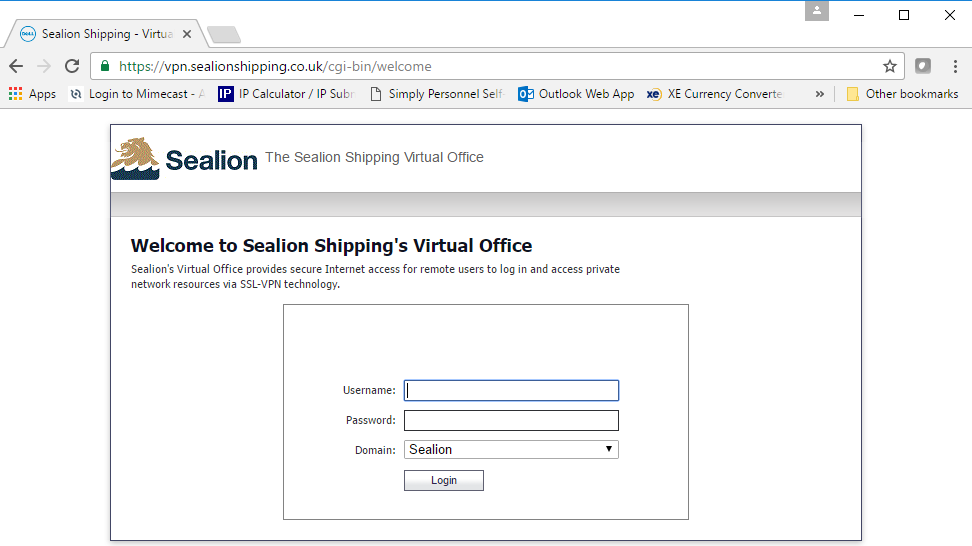 | SSL-VPN Server: | vpn.sealionshipping.co.uk |